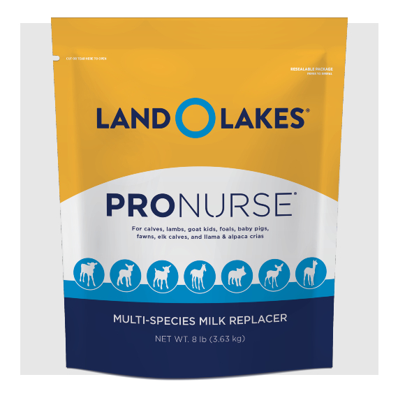 Purina® LAND O LAKES® ProNurse® Specialty Milk Replacer is an ideal milk replacer for several species of animals, including calves, lambs, goat kids, baby pigs, fawns, elk calves, llama and alpaca crias, and foals. ProNurse milk replacer is made with a balance of highly digestible proteins, fats and carbohydrates, and fortified with 26 essential vitamins and minerals. This easy-to-mix LAND O LAKES® milk replacer is packaged for freshness and convenience in a resealable ziplock pouch.