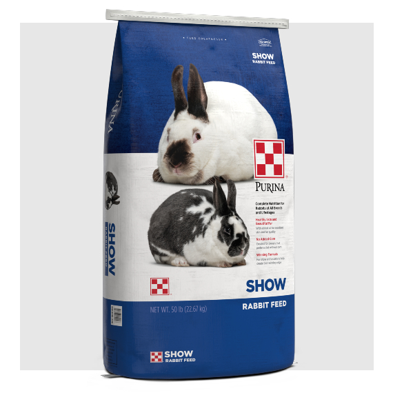 Purina Rabbit Chow™ Show Natural AdvantEdge™ is a completely balanced food specially formulated to produce shiny fur, rapid growth, and excellent reproduction. This blue-ribbon winning food contains added vegetable oils for superior fur quality and is designed for enthusiasts who raise and show rabbits and want the winning edge.